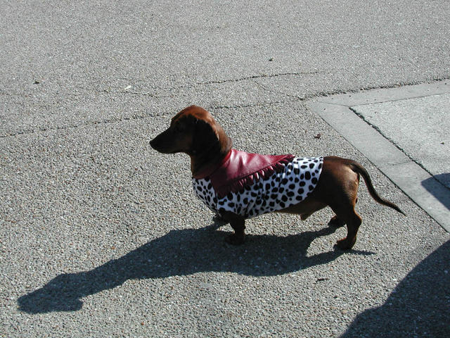 yes. a pink tail. dogs are expensive there! More than $1,000 each!