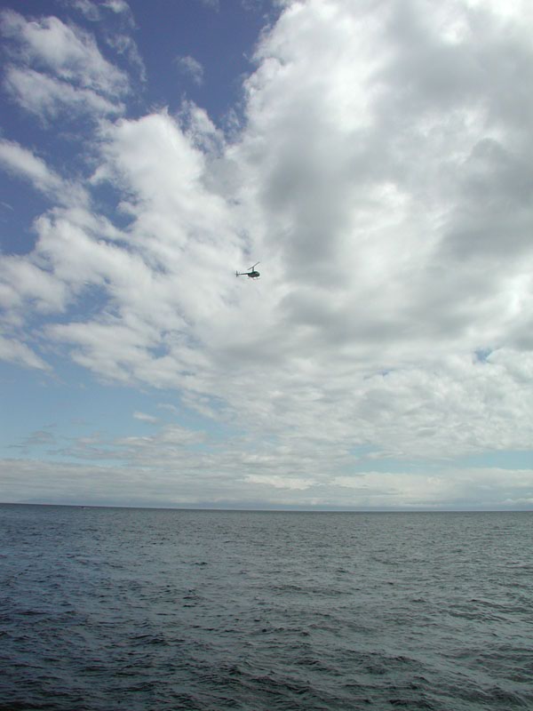 Around comes a helicopter
